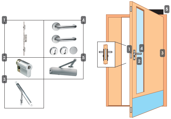 Wood or metal door applications with handle operation, inside handle always operates and the outside